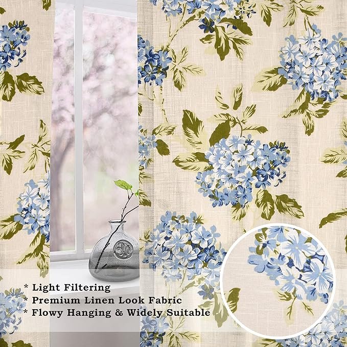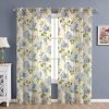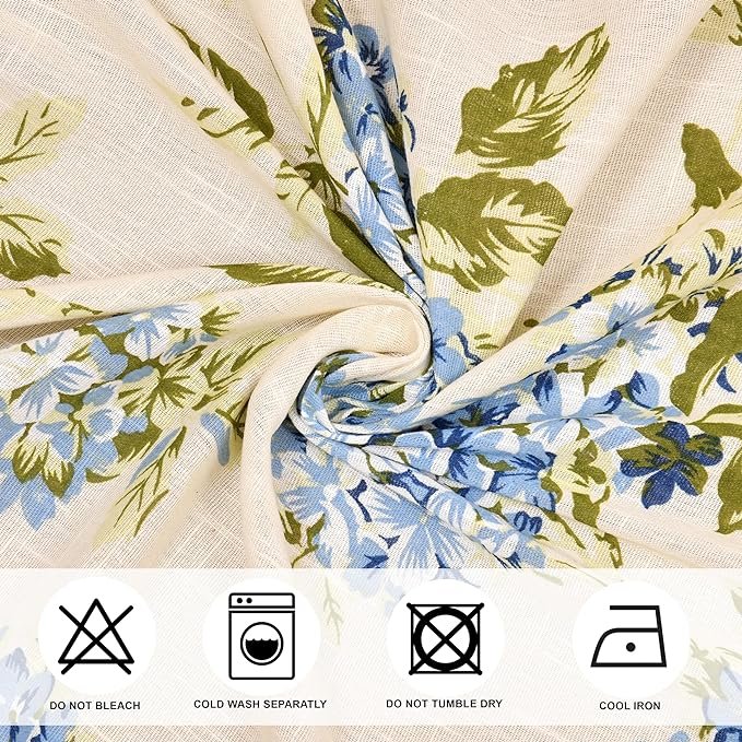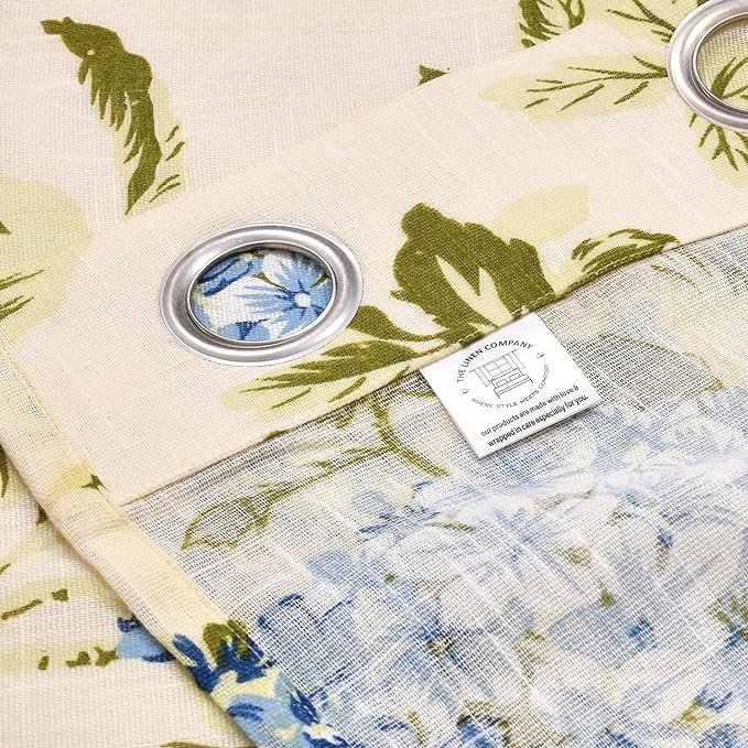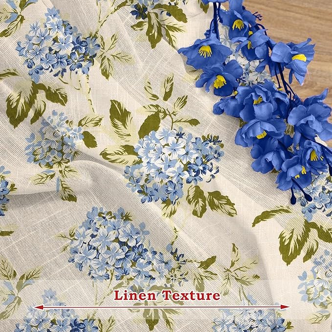 Cotton Linen Printed Sheer Curtain Set with Steel Eyelet Rings Door Curtain – 4.5 x 7 Feet (Set of 2 -Floral Heaven Blue)